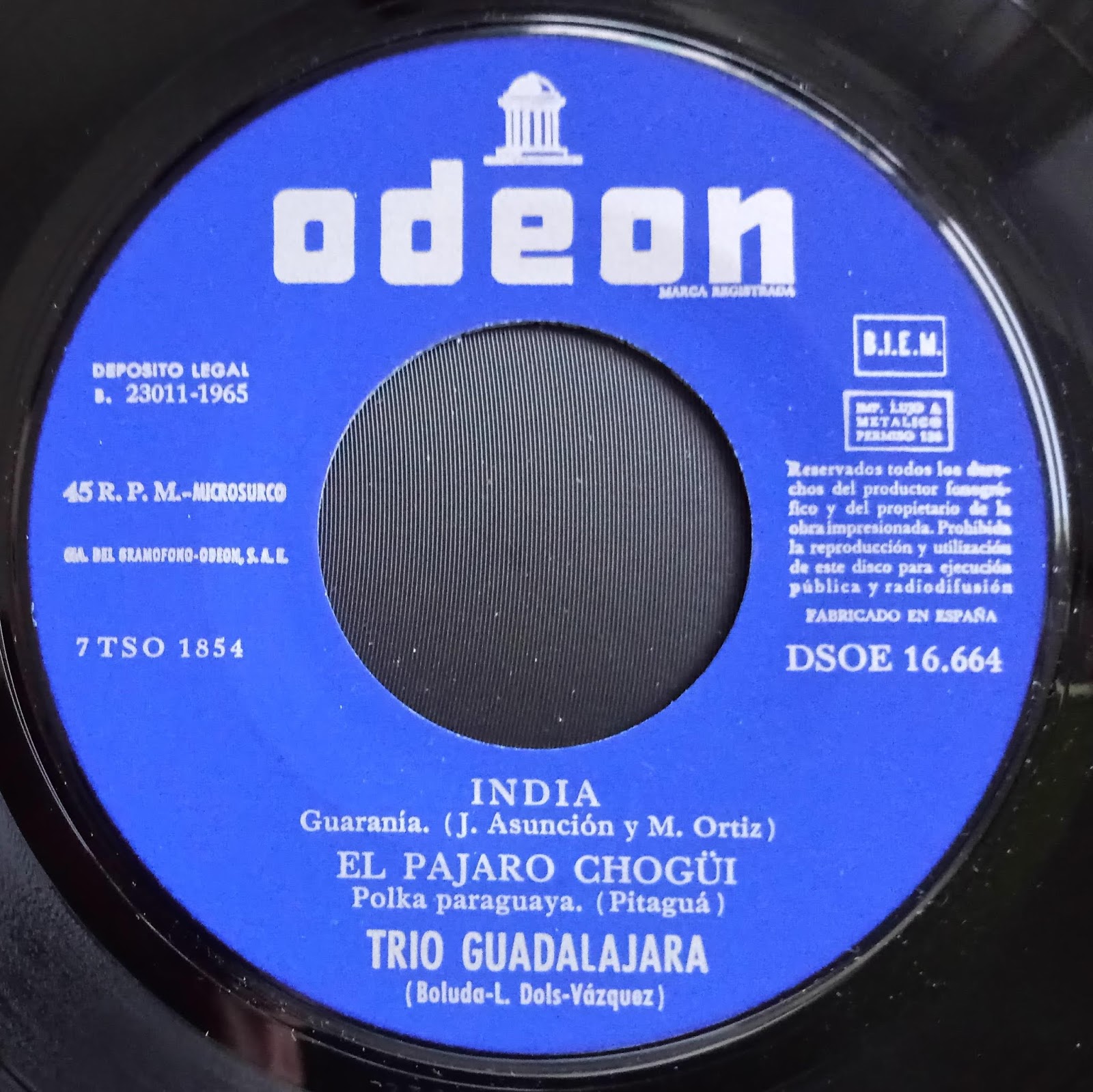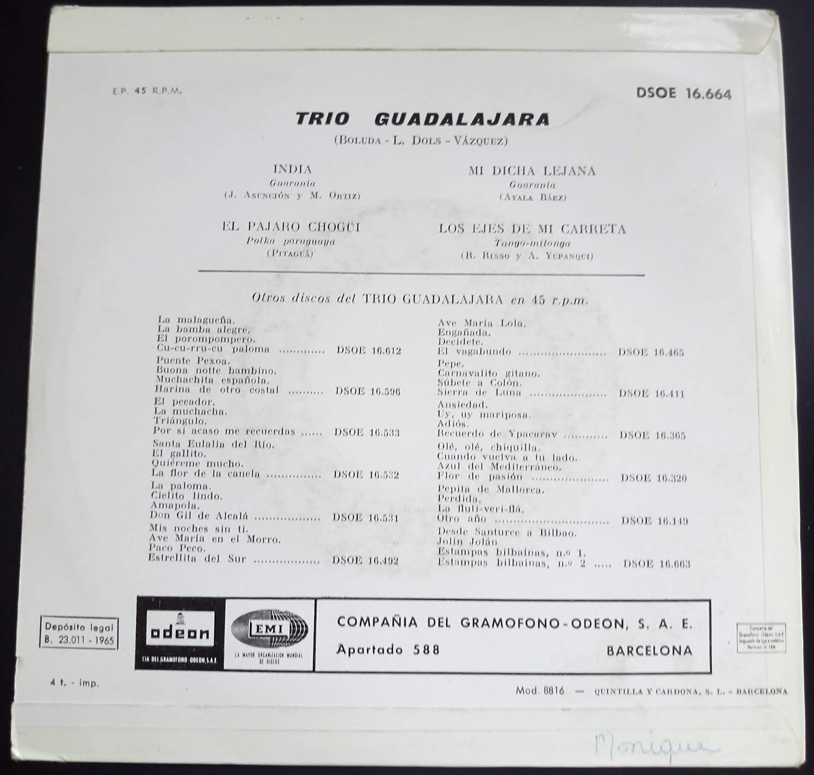 SELLO: ODEÓN REFERENCIA: DSOE 16.664 FORMATO: E.P. 45 R.P.M. AÑO: 1965 PAÍS: ESPAÑA