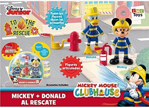 El mejor equipo de bomberos: Mickey y Donald. Bomberos al rescate equipados con el traje y el casco para atender a la primera llamada, con manguera y extintor para extinguir cualquier llama.